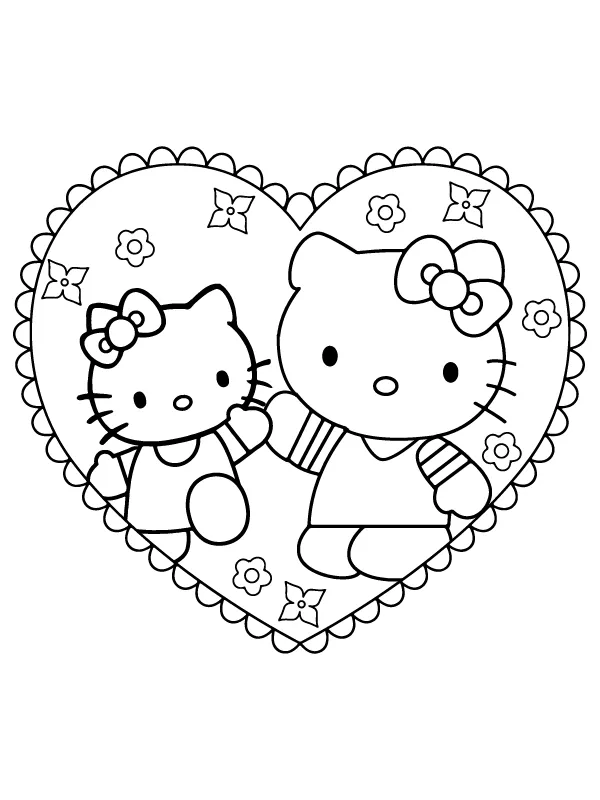 Coloring description : Download Printable Heart Hello Kitty Valentines Coloring Page