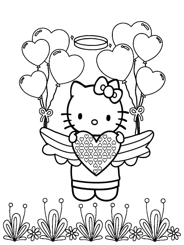 Hello Kitty Flying with Valentine Hearts
