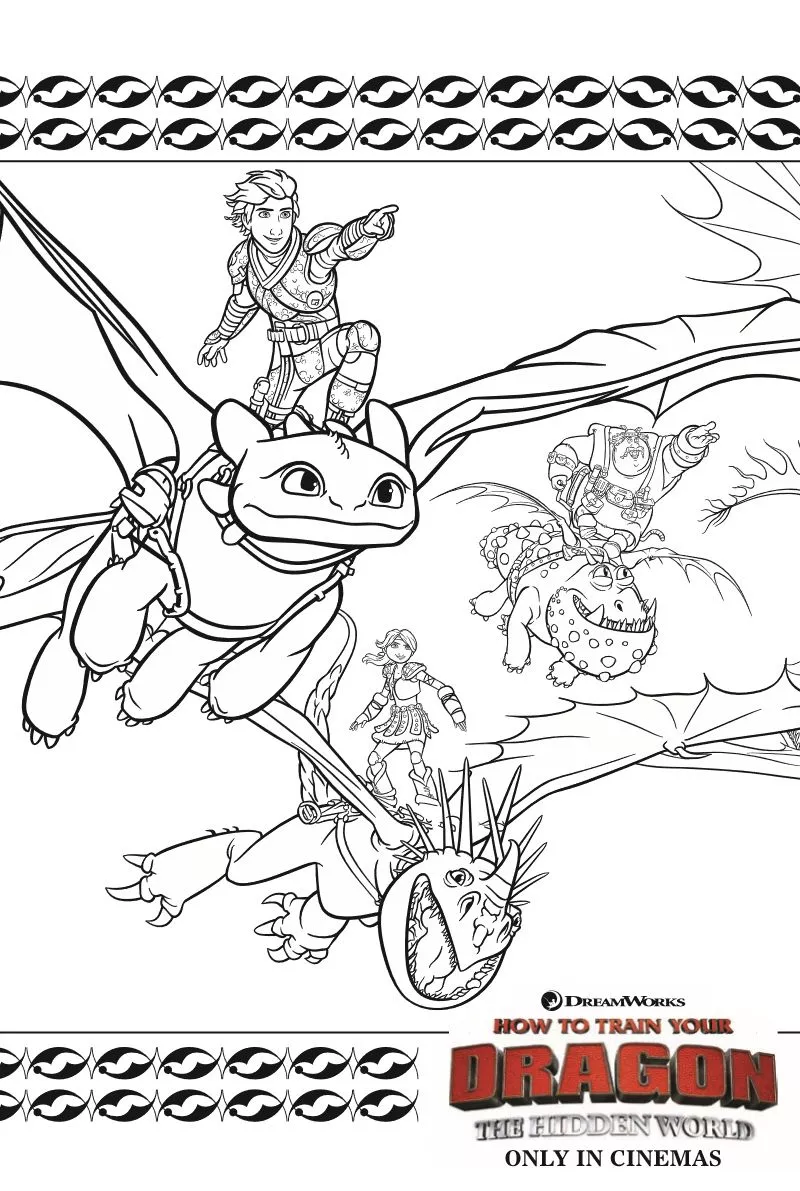 Coloring description : Download Printable Hiccup And His Friends Flying Coloring Page