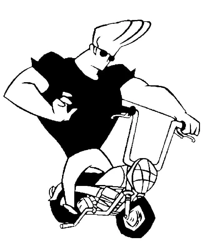 Coloring description : Download Printable Johnny Bravo on Motobike Coloring Page
