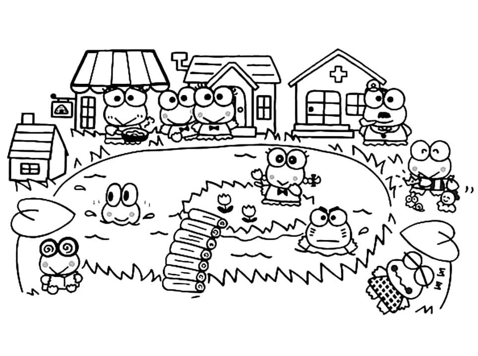 Coloring description : Download Printable Keroppi Village Coloring Page