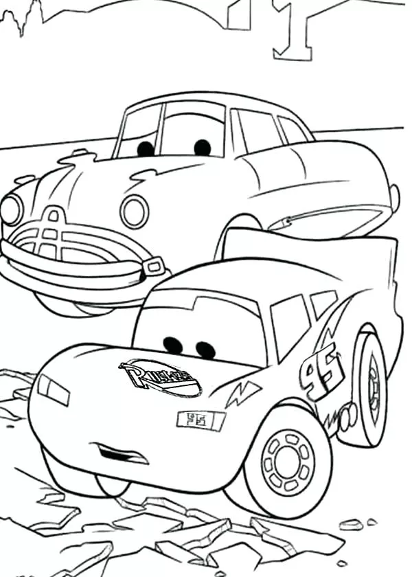 Coloring description : Download Printable McQueen Looking The Broken Road Coloring Page