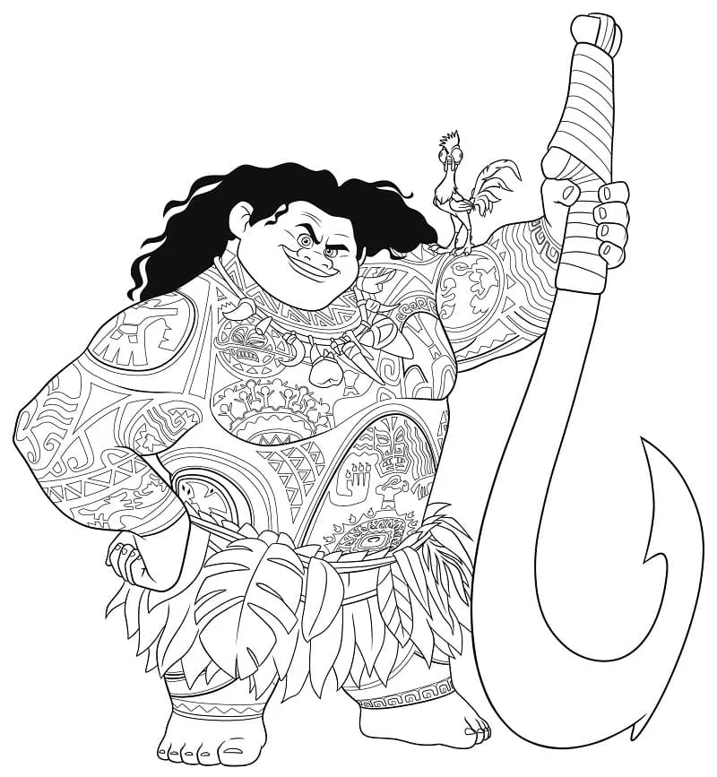Coloring description : Download Printable Maui and Heihei Coloring Page