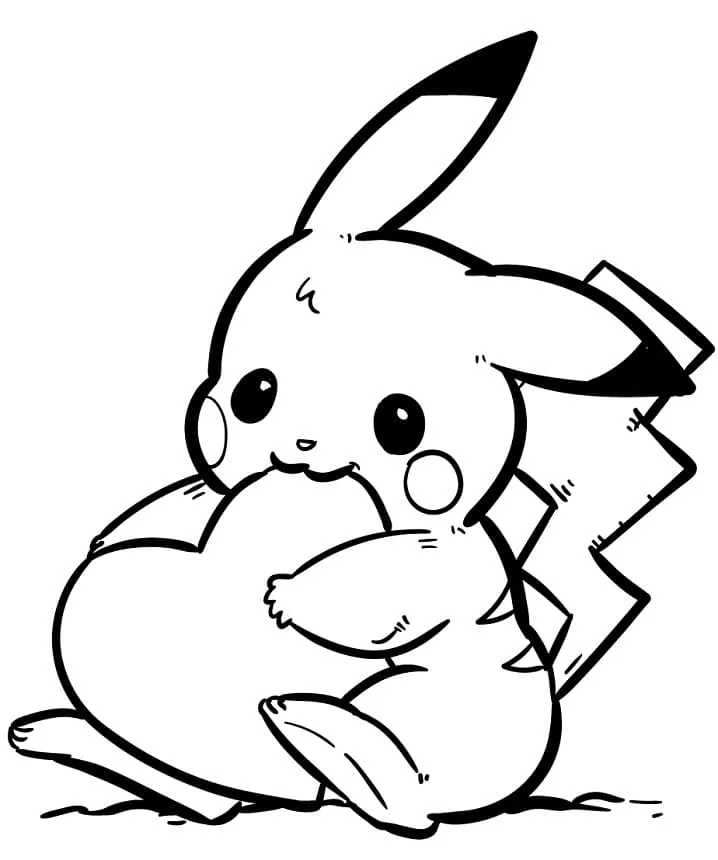 Coloring description : Download Printable Pikachu with Heart Shape Coloring Page