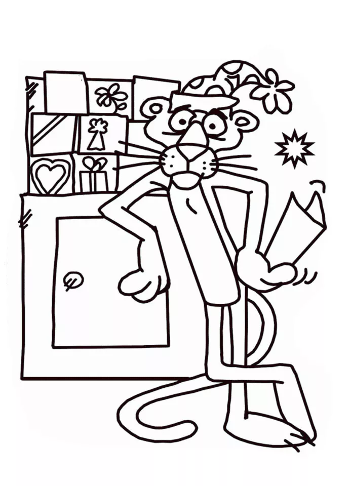 Coloring description : Download Printable Pink Panther in Kitchen Coloring Page