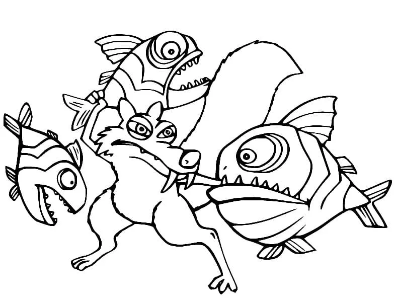 Coloring description : Download Printable Scrat with Piranhas Coloring Page