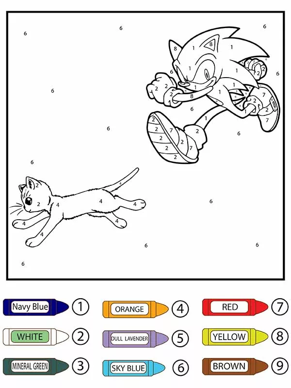 Coloring description : Download Printable Sonic Riding a Skateboard Color by Number Coloring Page