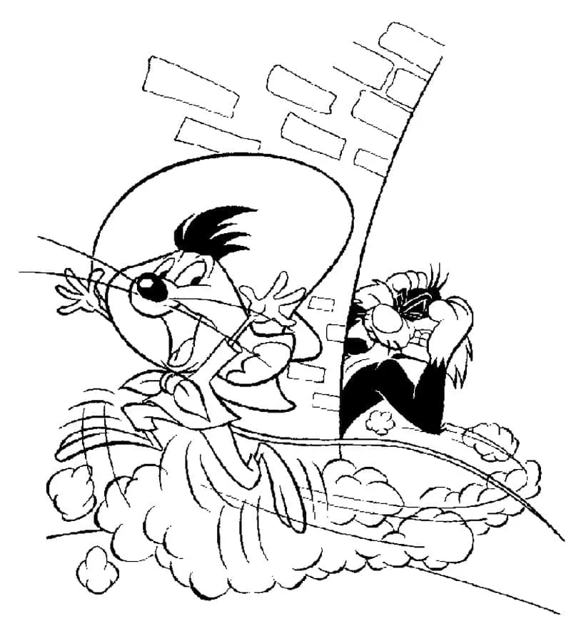 Coloring description : Download Printable Speedy Gonzales and Sylvester Coloring Page