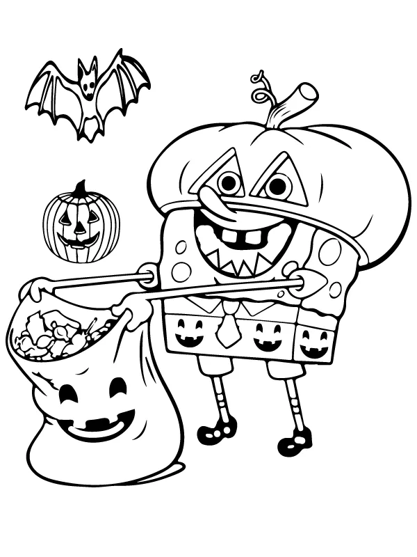 Coloring description : Download Printable SpongeBob’s Pumpkin Candy Gift Coloring Page