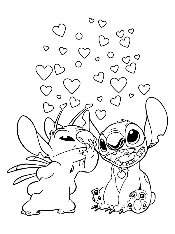 Coloring description : Download Printable Lovely Stitch Valentines Coloring Page