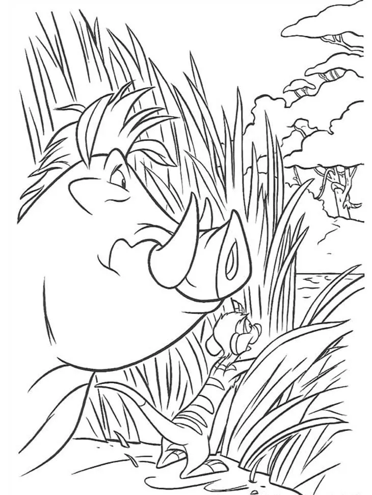 Coloring description : Download Printable Timon and Pumbaa Are Sneaking Coloring Page