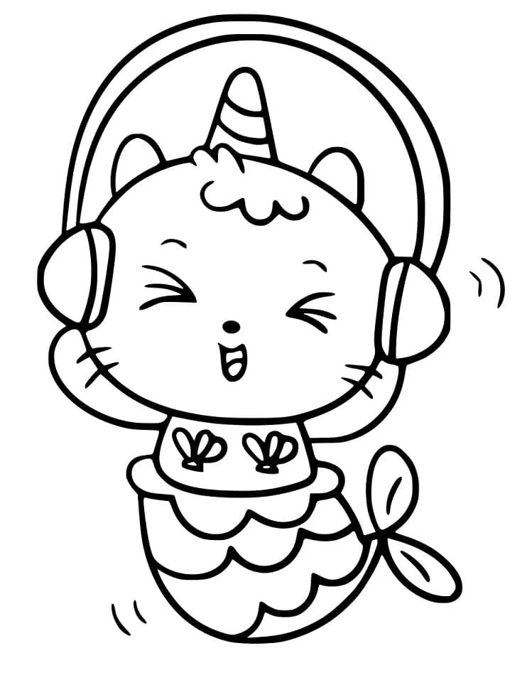 Coloring description : Download Printable Mermaid Unicorn Cat Coloring Page