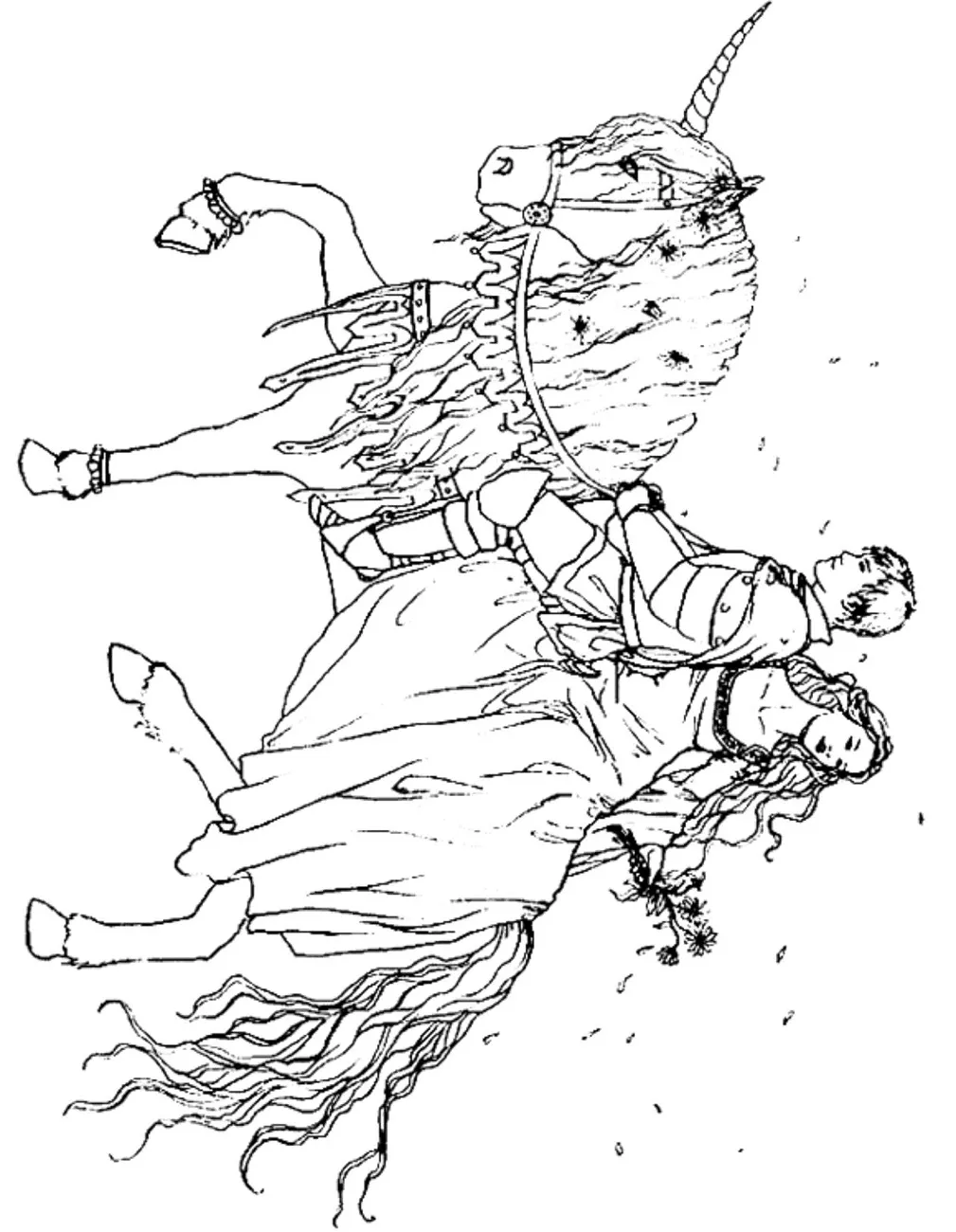 Coloring description : Download Printable A Couple On Unicorn Coloring Page