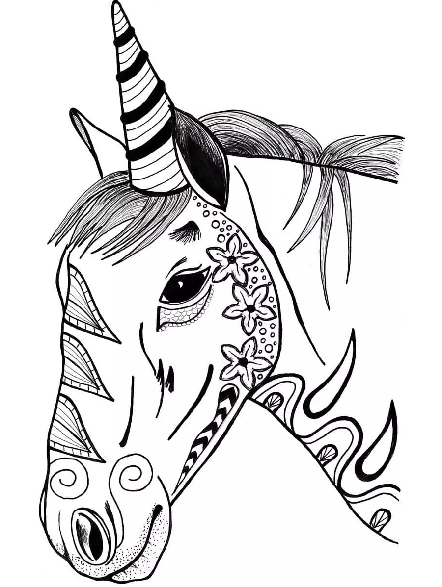 Coloring description : Download Printable Awesome Unicorn Head Coloring Page