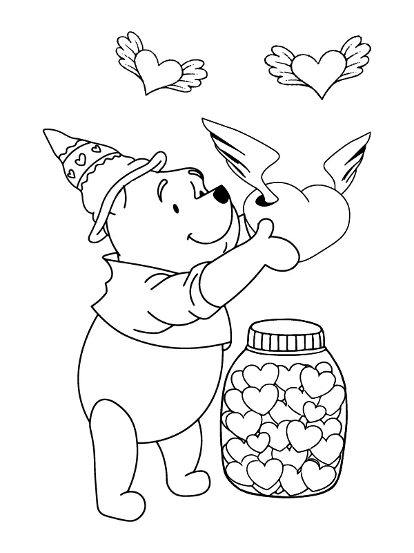 Coloring description : Download Printable Winnie the Pooh and Valentine Hearts Coloring Page