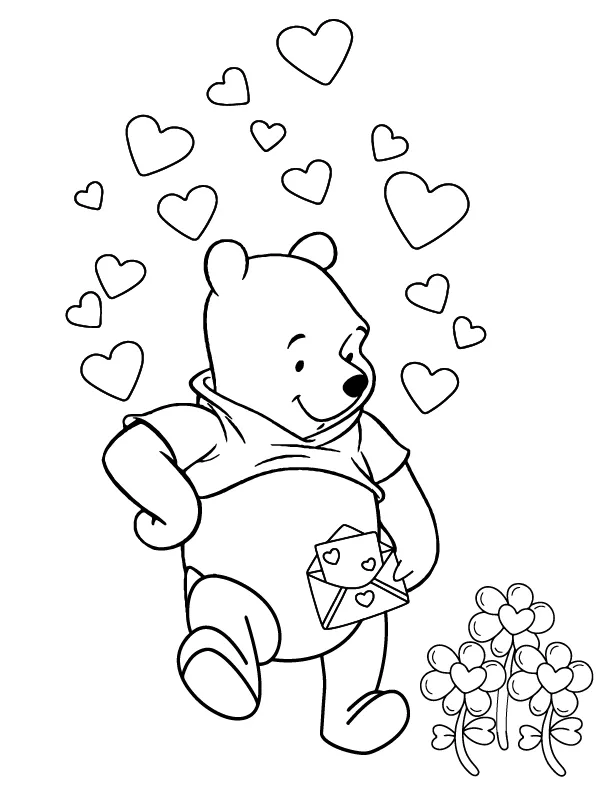 Coloring description : Download Printable Winnie the Pooh Holding a Valentine Letter Coloring Page