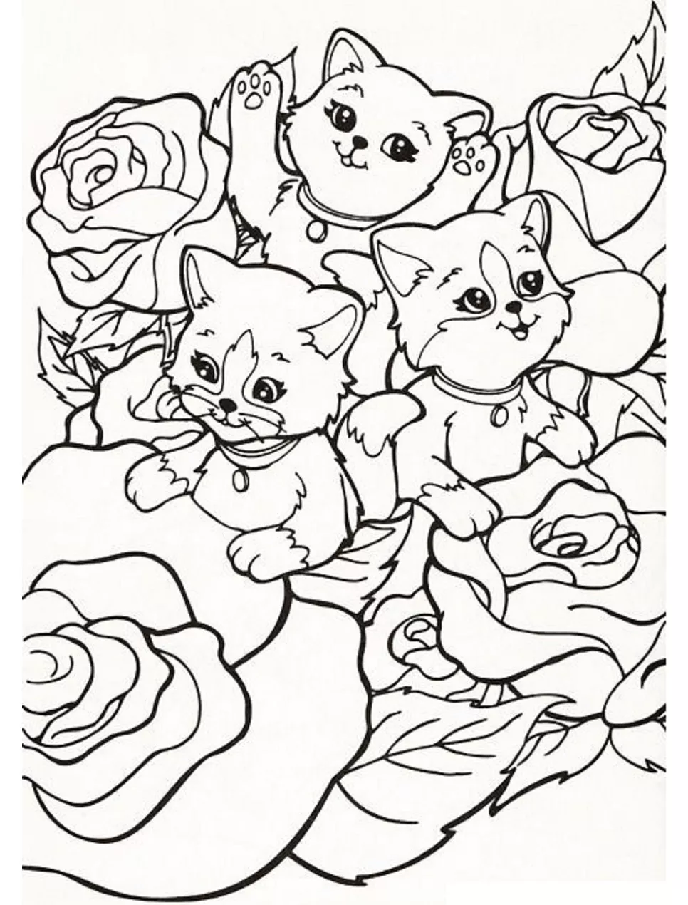 Coloring description : Download Printable Cats With Roses From Lisa Frank Coloring Page