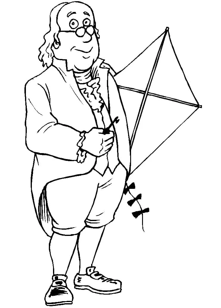 Coloring description : Download Printable Benjamin Franklin with Kite Coloring Page