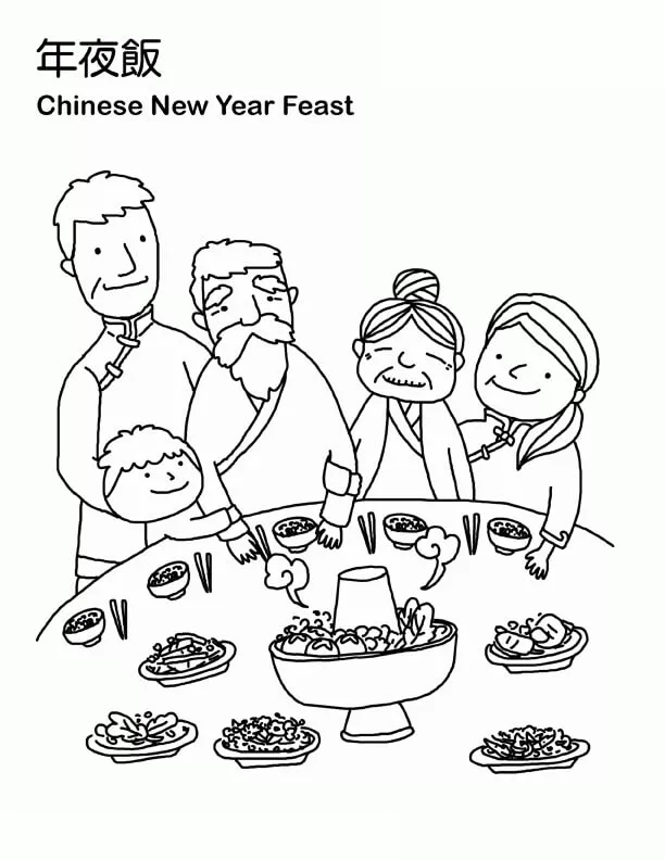 Coloring description : Download Printable Chinese New Year Feast Coloring Page