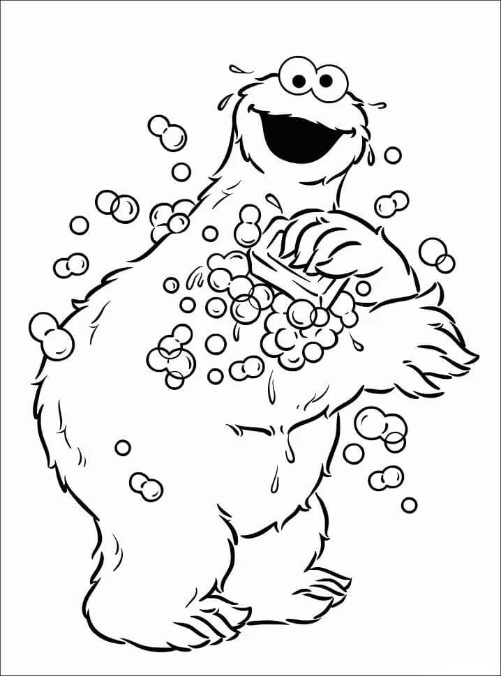 Coloring description : Download Printable Cookie Monster Showering Coloring Page
