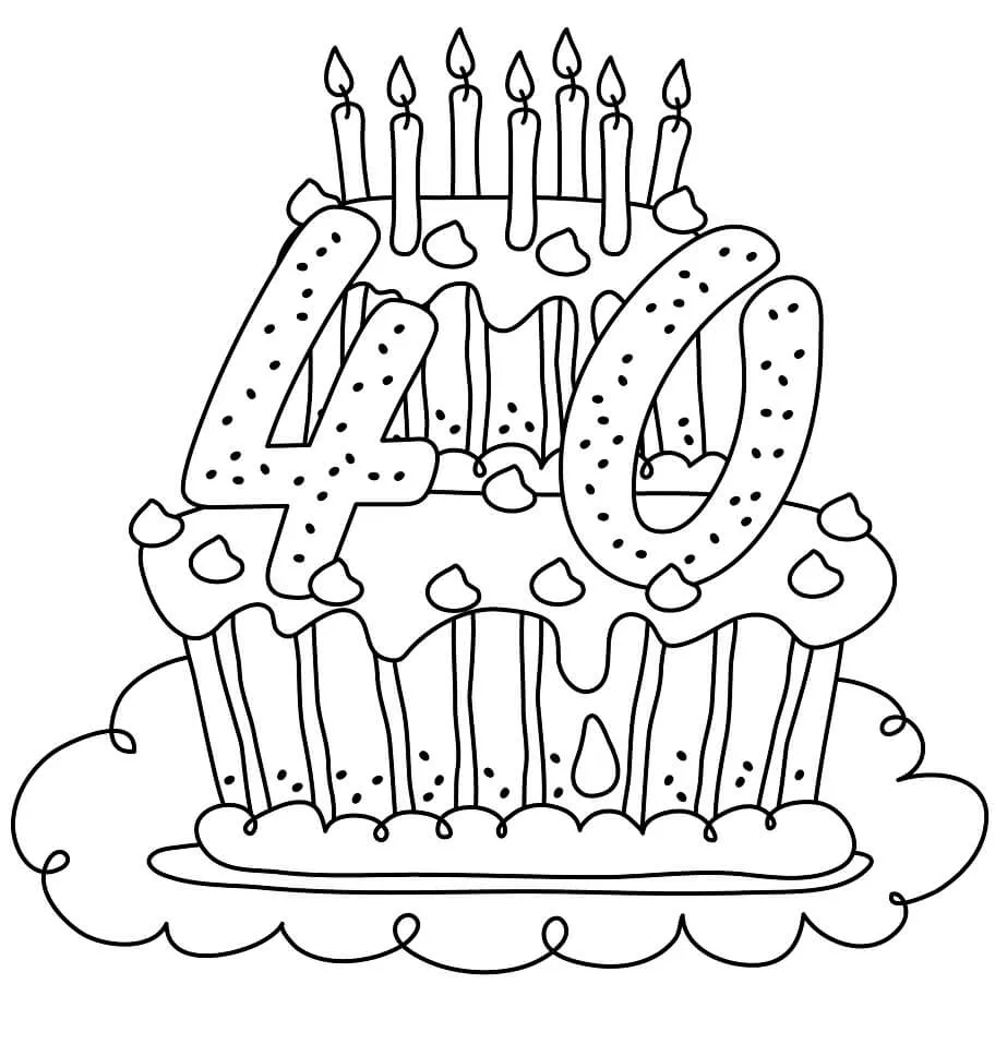: Druckbar herunterladen 40 Years Old Birthday Cake Malvorlage