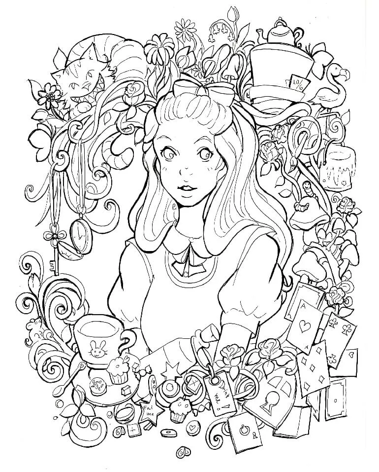 : Druckbar herunterladen Alice Anime Mädchen Malvorlage