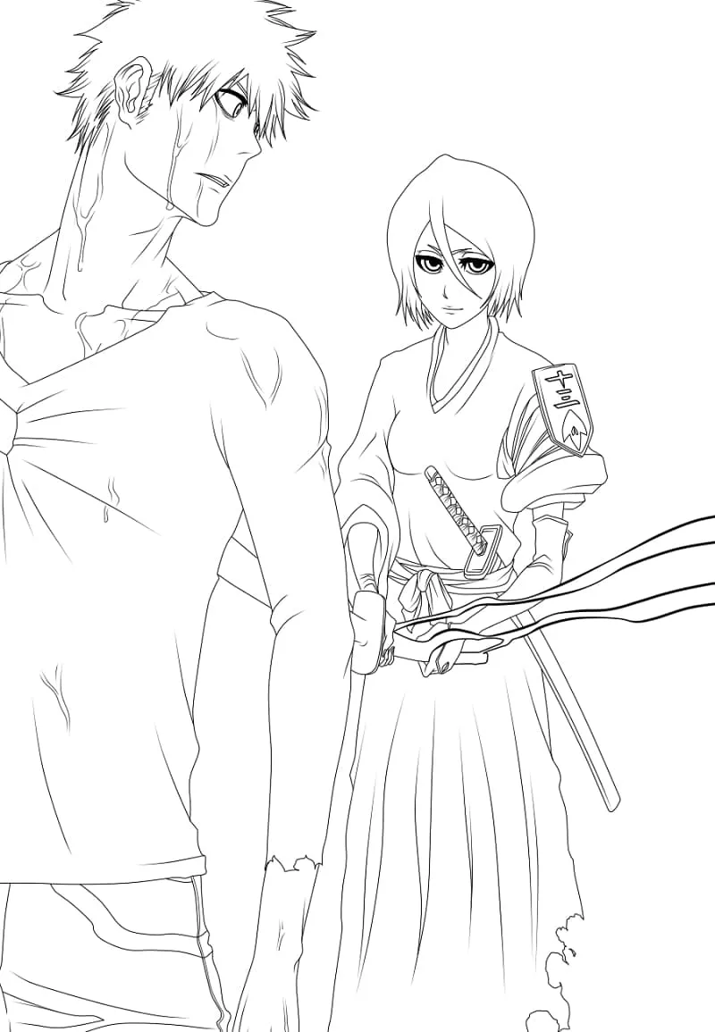 : Druckbar herunterladen Ichigo und Rukia Malvorlage