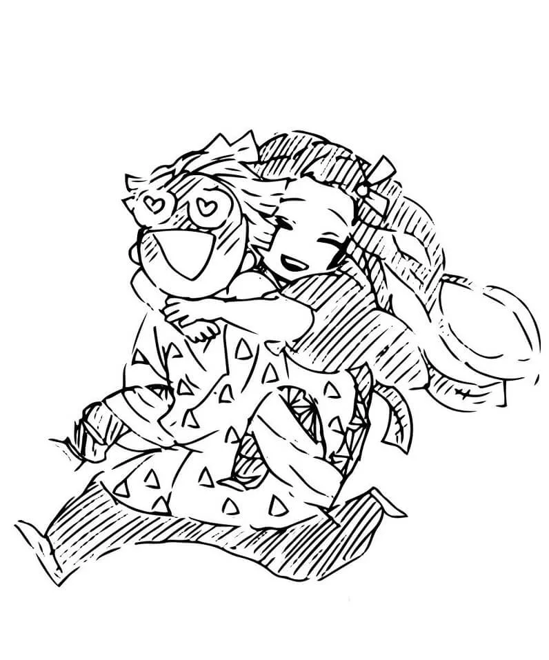 : Druckbar herunterladen Zenitsu- und Nezuko-Dämonentöter Malvorlage