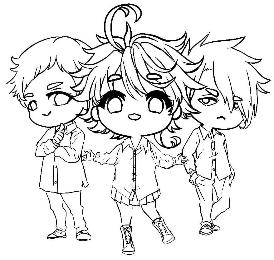: Druckbar herunterladen Chibi Das verheißene Nimmerland Malvorlage