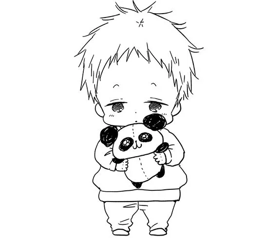 : Druckbar herunterladen Kotaro mit Panda-Teddy Malvorlage