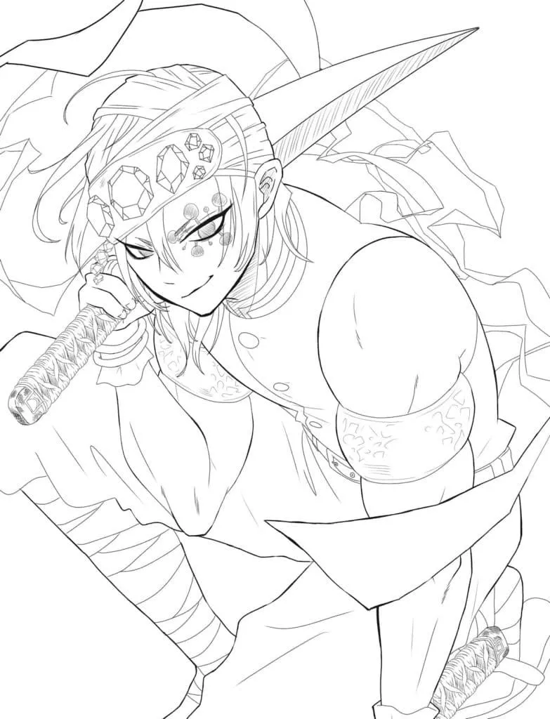 : Druckbar herunterladen Demon Slayer Tengen Uzui Malvorlage
