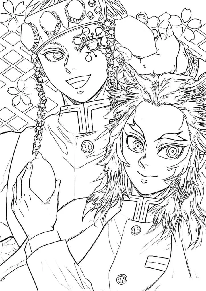 : Druckbar herunterladen Tengen Uzui und Kyojuro Rengoku Malvorlage
