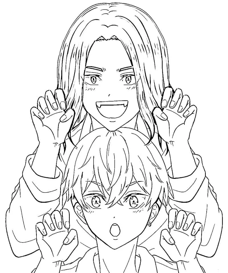 Klicken Sie auf die Schaltfläche Baji Keisuke mit Chifuyu Matsuno Malvorlagen, um die Druckversion anzuzeigen oder online auszumalen (kompatibel mit iPad und Android-Tablets).