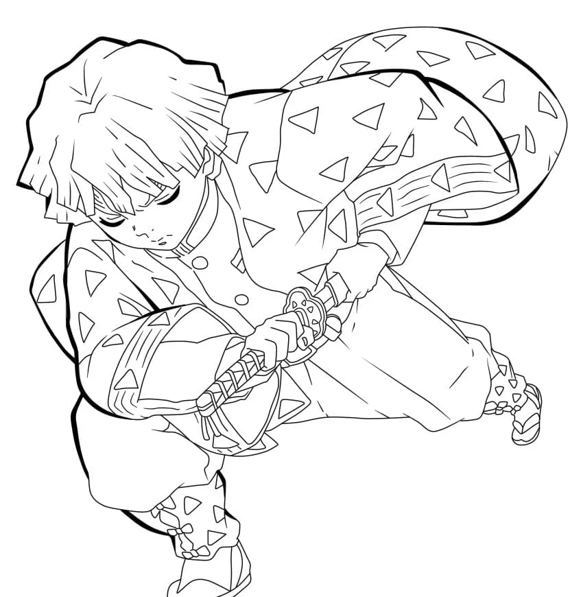 : Druckbar herunterladen Zenitsu Aktion Malvorlage
