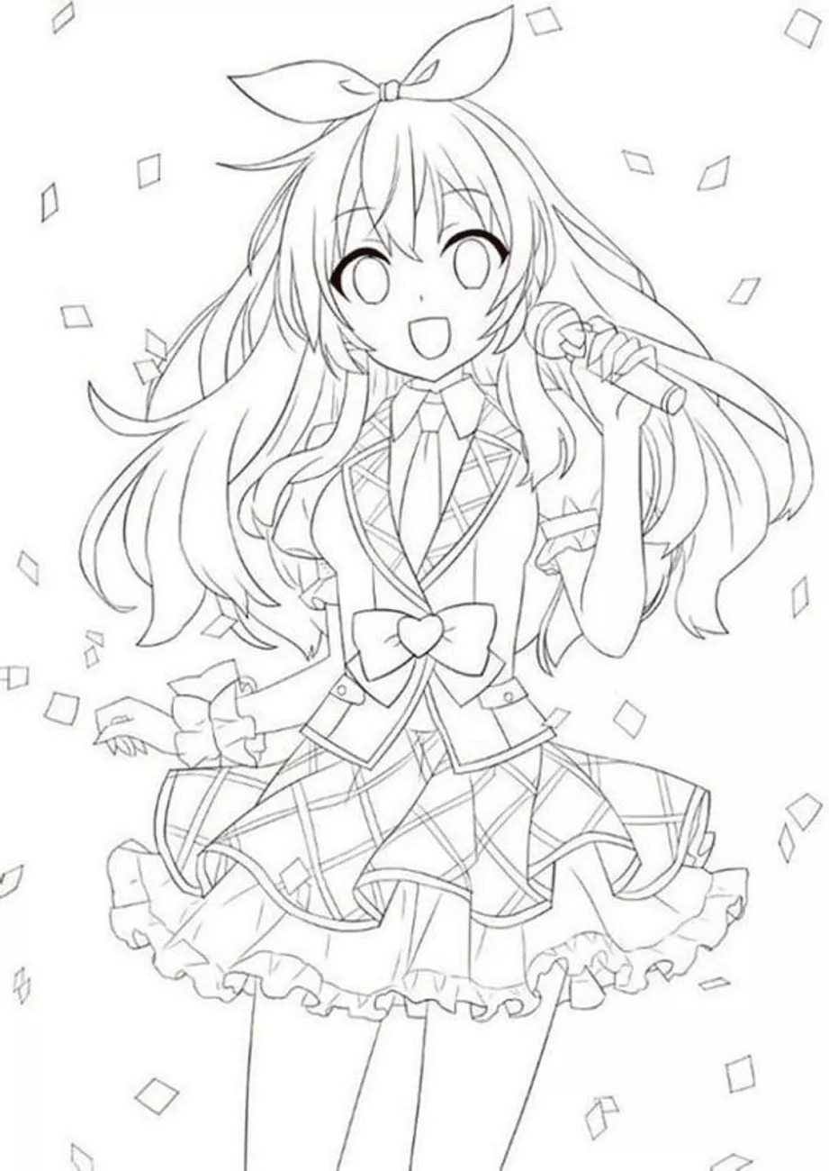 : Druckbar herunterladen Anime Girl Singing Malvorlage
