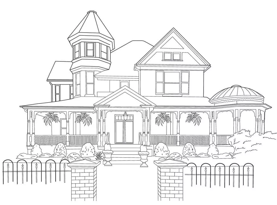 : Druckbar herunterladen Awesome Mansion Malvorlage
