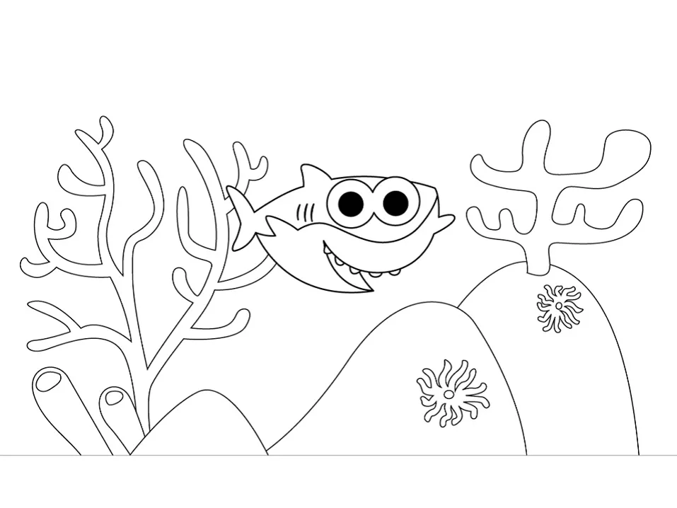 : Druckbar herunterladen Baby Shark Swimming Malvorlage