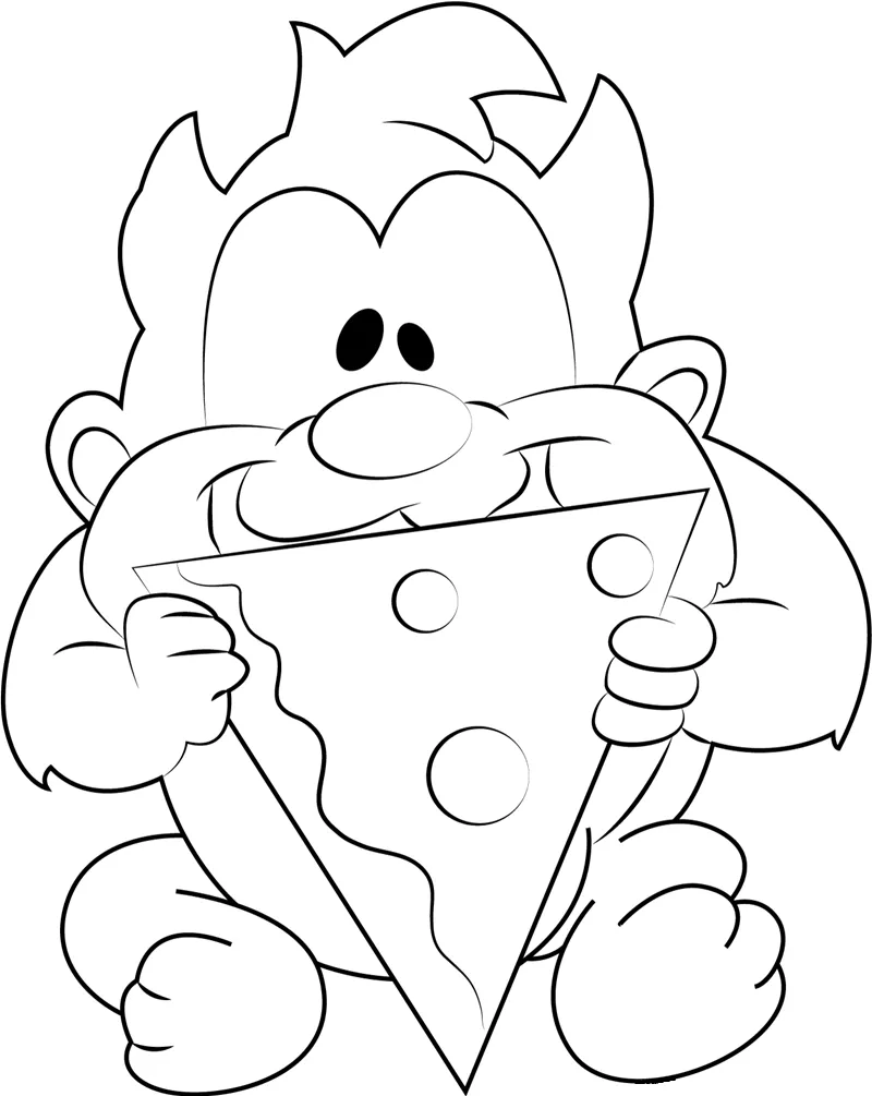 : Druckbar herunterladen Baby Taz Eating Pizza Malvorlage
