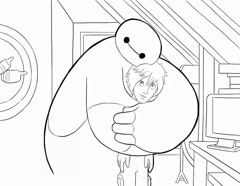: Druckbar herunterladen Baymax is Hugging Hiro Malvorlage