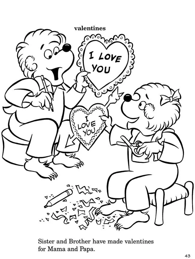 : Druckbar herunterladen Berenstain Bears with Valentine Malvorlage