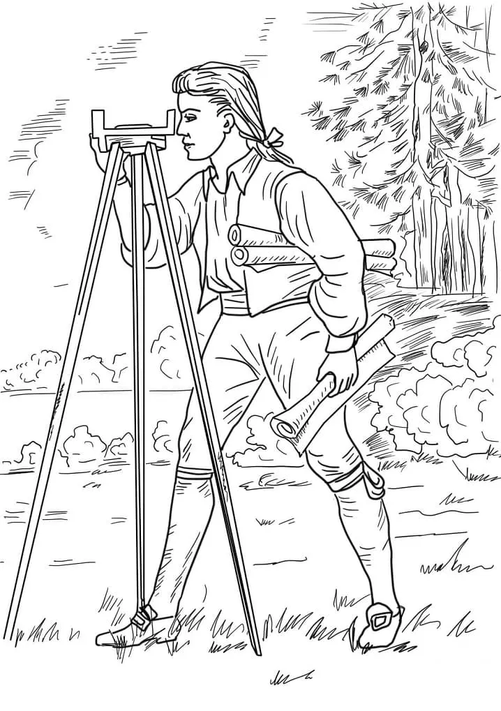 Beschreibung der Färbung : Druckbar herunterladen Der junge George Washington Landvermesser und Kartograf Malvorlage