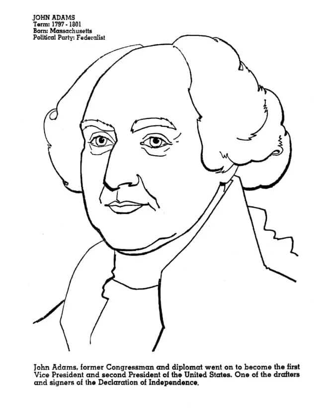 : Druckbar herunterladen Präsident John Adams zum Ausdrucken Malvorlage