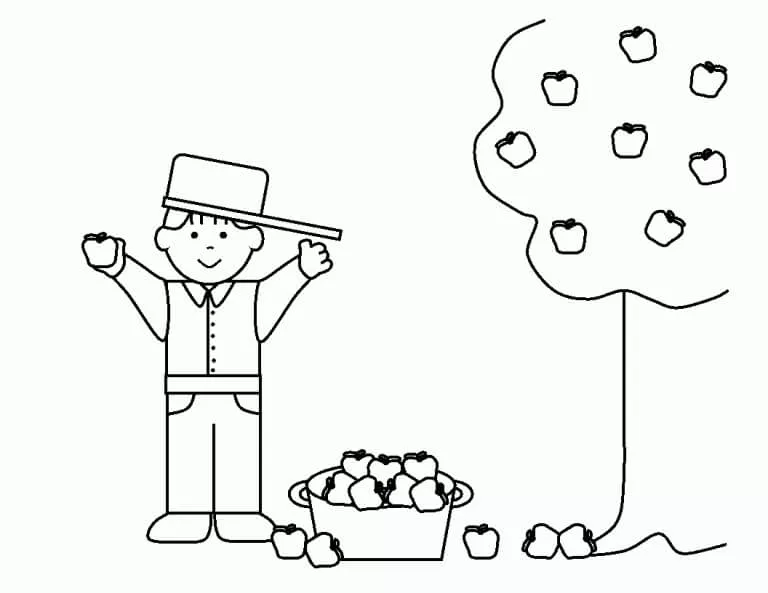 : Druckbar herunterladen Johnny AppleÄpfel entkernen Malvorlage