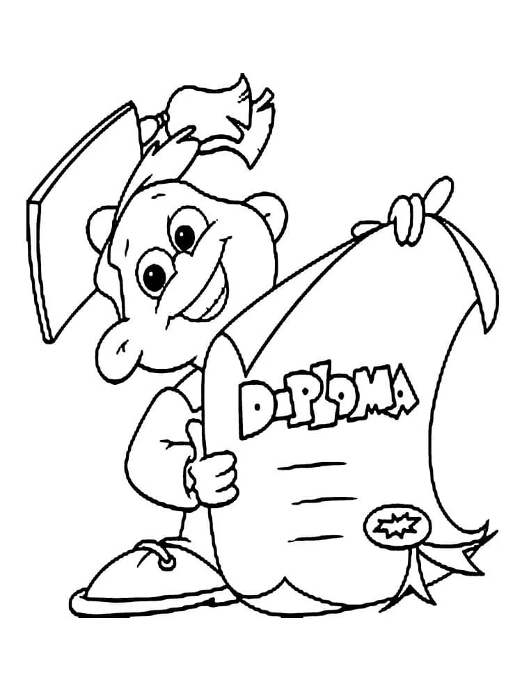 : Druckbar herunterladen Junge mit Diplom Malvorlage