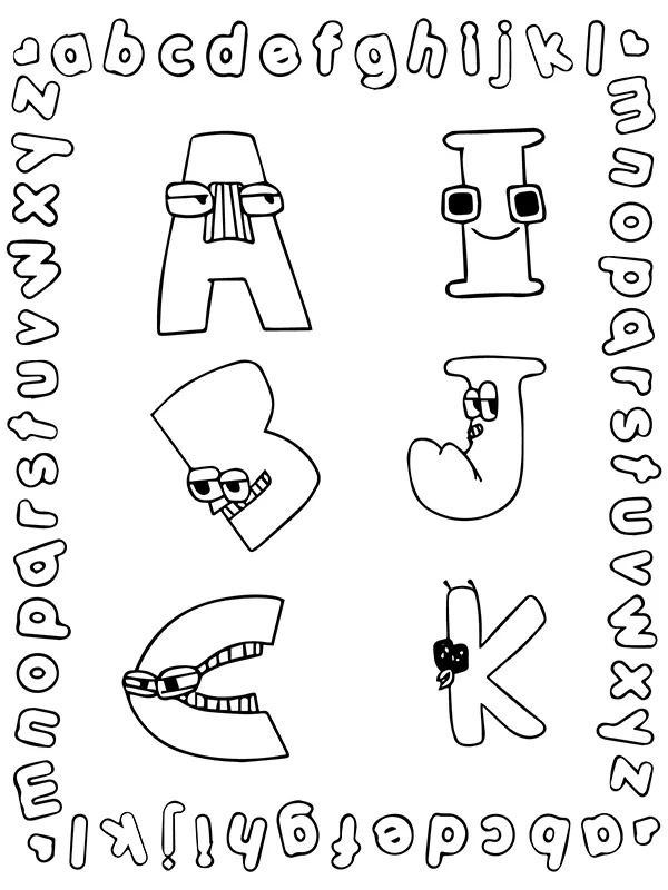 Beschreibung der Färbung : Druckbar herunterladen Alphabet Lore Buchstaben A, B, C, I, J und K Malvorlage