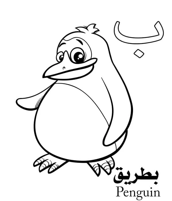 : Druckbar herunterladen Pinguin Arabisches Alphabet Malvorlage