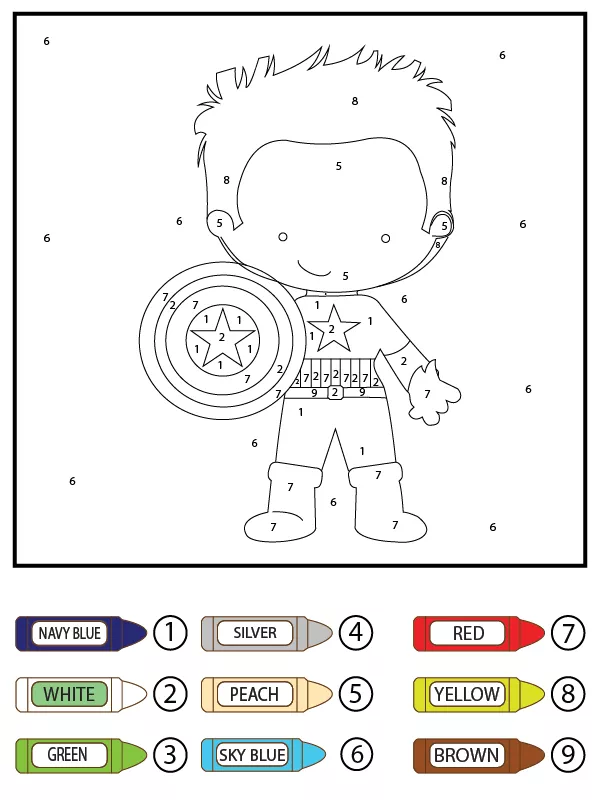 Captain America mit Schild Farbe nach Zahlen