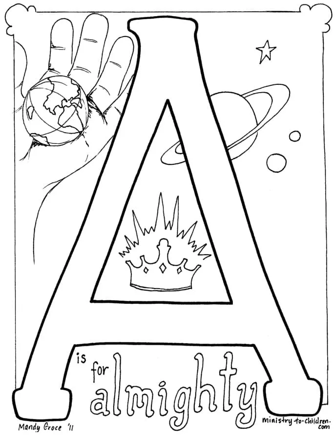 : Druckbar herunterladen A steht für Allmächtig Malvorlage
