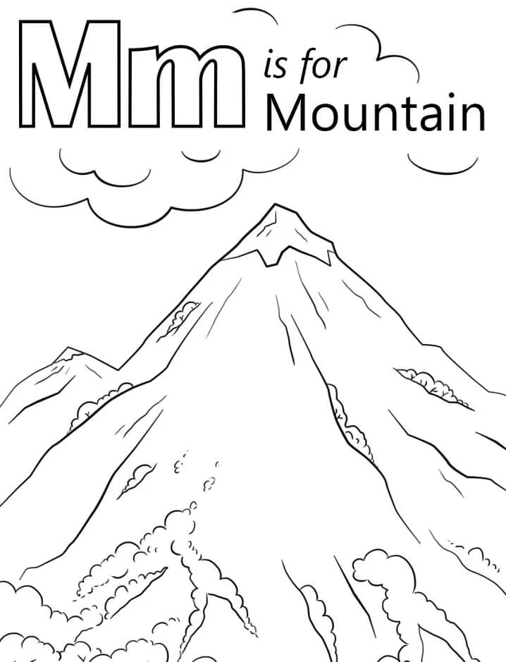 : Druckbar herunterladen Bergbuchstabe M Malvorlage