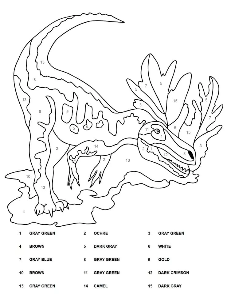 Beschreibung der Färbung : Druckbar herunterladen Allosaurus Dinosaurier Malen nach Zahlen Malvorlage